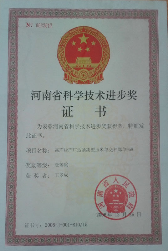 2006年榮獲河南省科學(xué)技術(shù)進(jìn)步獎(jiǎng)